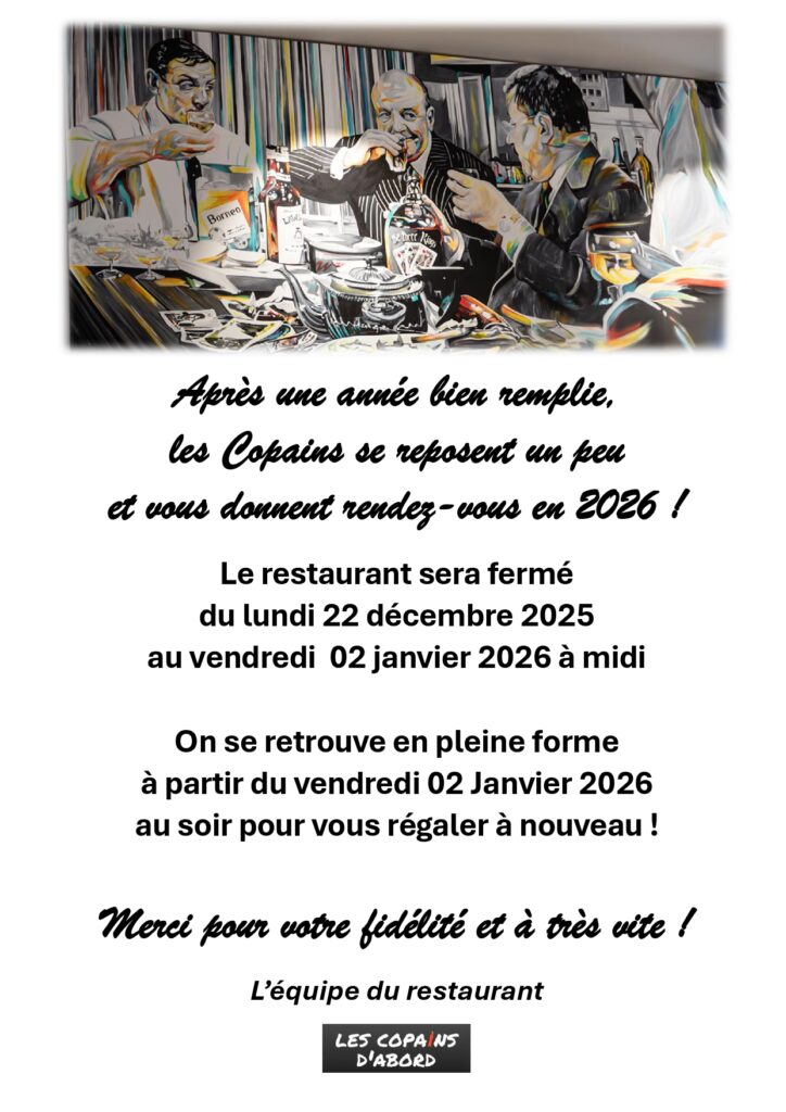 Nous avons mis en place les vendredis et samedi soirs un double service : réservations possibles de 18h45 à 19h15 et de 21h15 à 21h45.